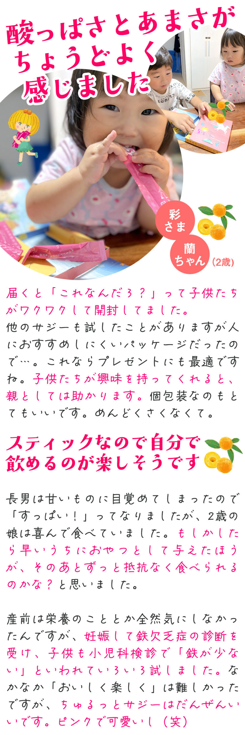 サジーってなに?わたしはすっぱいからだいきらい。「ちゃんと食べてね」っていうおねえちゃんもだいきらい。