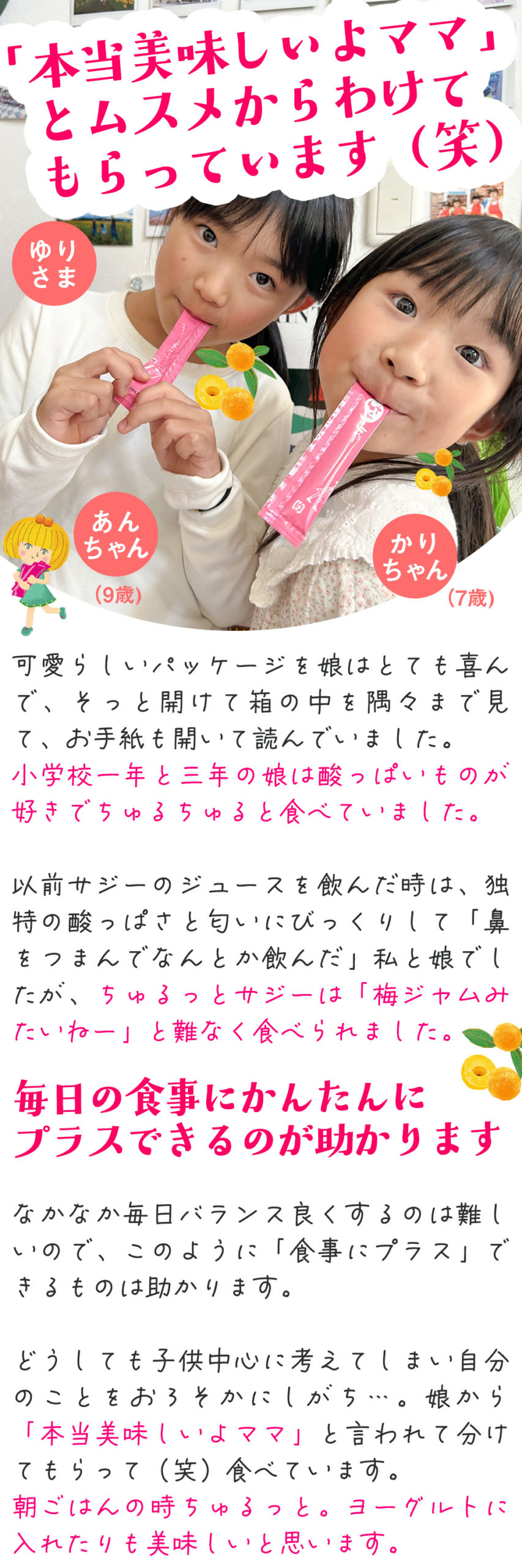 そうやってサジー離れしてしまう人のための「簡単」「ほんのりはちみつ味」なサジーがちゅるっとサジーです。