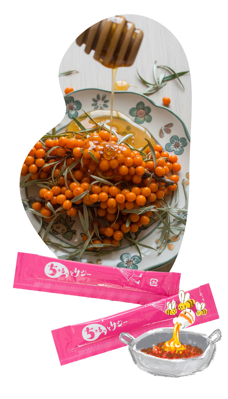様々な研究やサジーの販売を推進する日本サジー協会のレポートによると200種類以上の栄養素を持っていて、なかでも私たちの「健康」や「美容」にとてもうれしいビタミンや鉄分、アミノ酸やポリフェノールなどのバランスがとてもいい果物です。